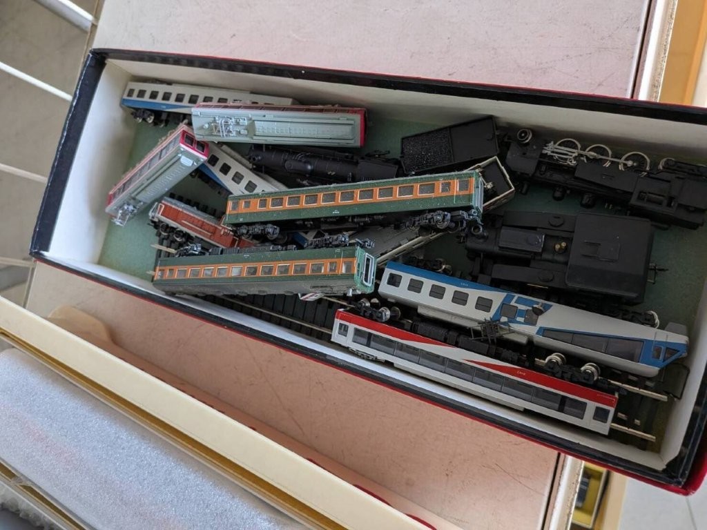 箱を開けてみると、中には整然と並べられた鉄道模型Nゲージがぎっしりと収められており、ブルートレインや特急型車両、さらには蒸気機関車まで、多彩なコレクションが大切に保管されていました。