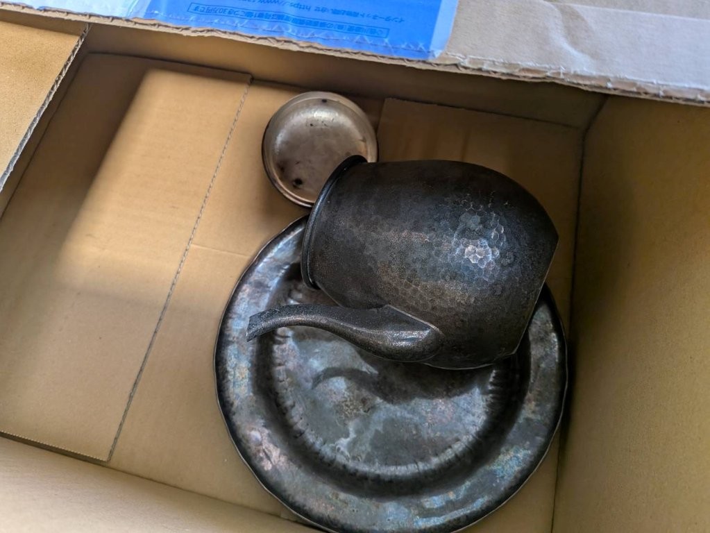 長年使われずに眠っていたものの、銀特有の経年変化による深みのある色合いが逆に趣を増しており、手仕事の跡がしっかりと残る見事な品でした。