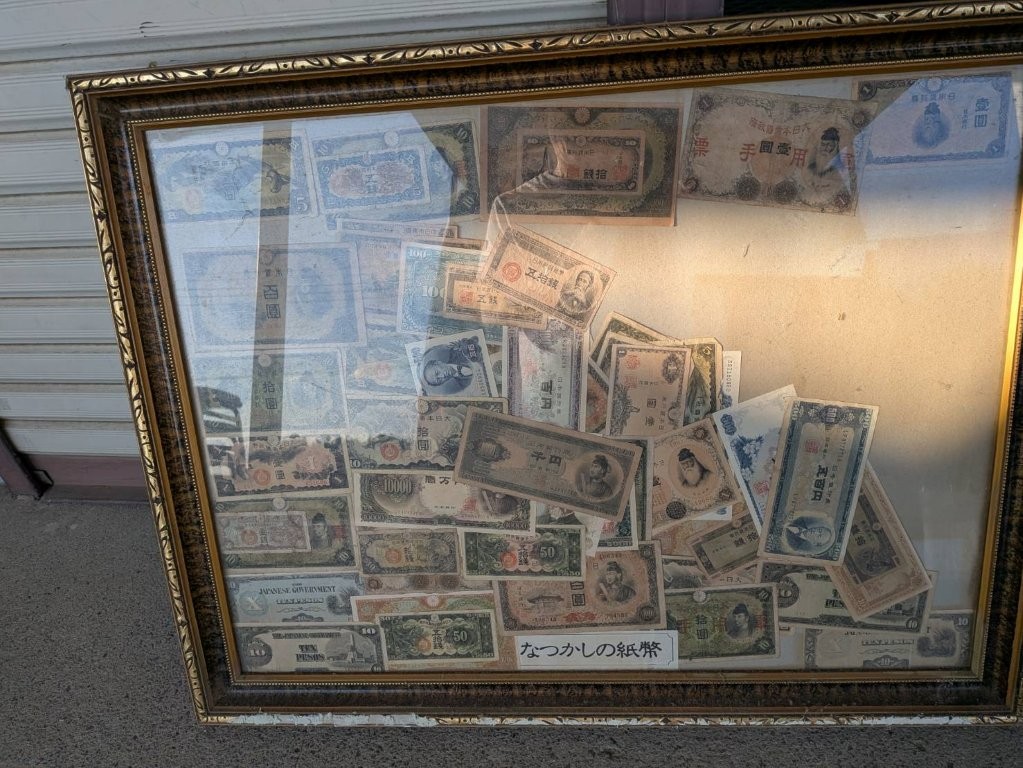お伺いした現場には、かつてご家族が暮らしていた温かな面影が残っており、リビングの壁にかけられていたのは、古い日本紙幣を丁寧に並べて額装した一枚のフレーム。