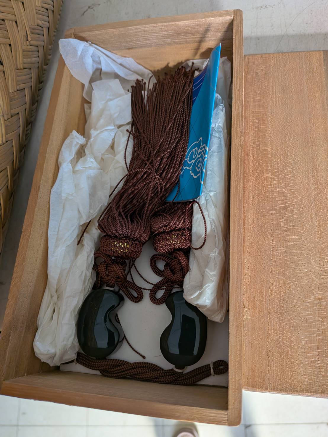 箱を開けると、柔らかな和紙に包まれた一対の翡翠風鎮が静かに眠っていました。