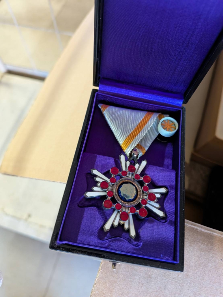 勲五等 双光旭日章は、地域社会や公共、産業、行政などに長年貢献した人物に贈られた国家勲章です。