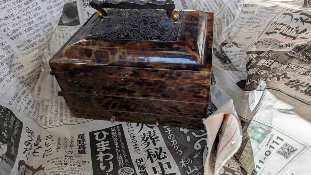 押し入れの奥から、新聞紙に包まれた小ぶりの引き出し箱が見つかったとのことです。