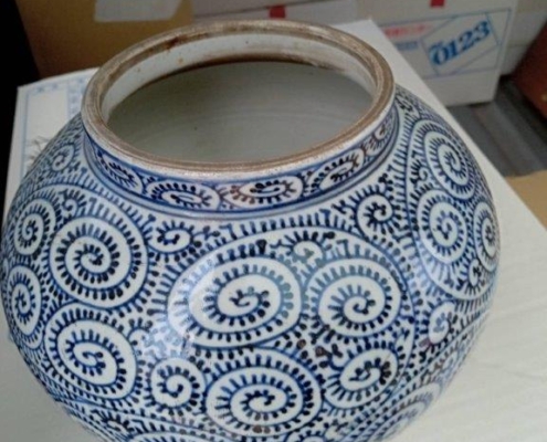 江戸時代につくられた蛸唐草文様の壷を買取|山梨県富士吉田市にて伝統工芸品を出張買取